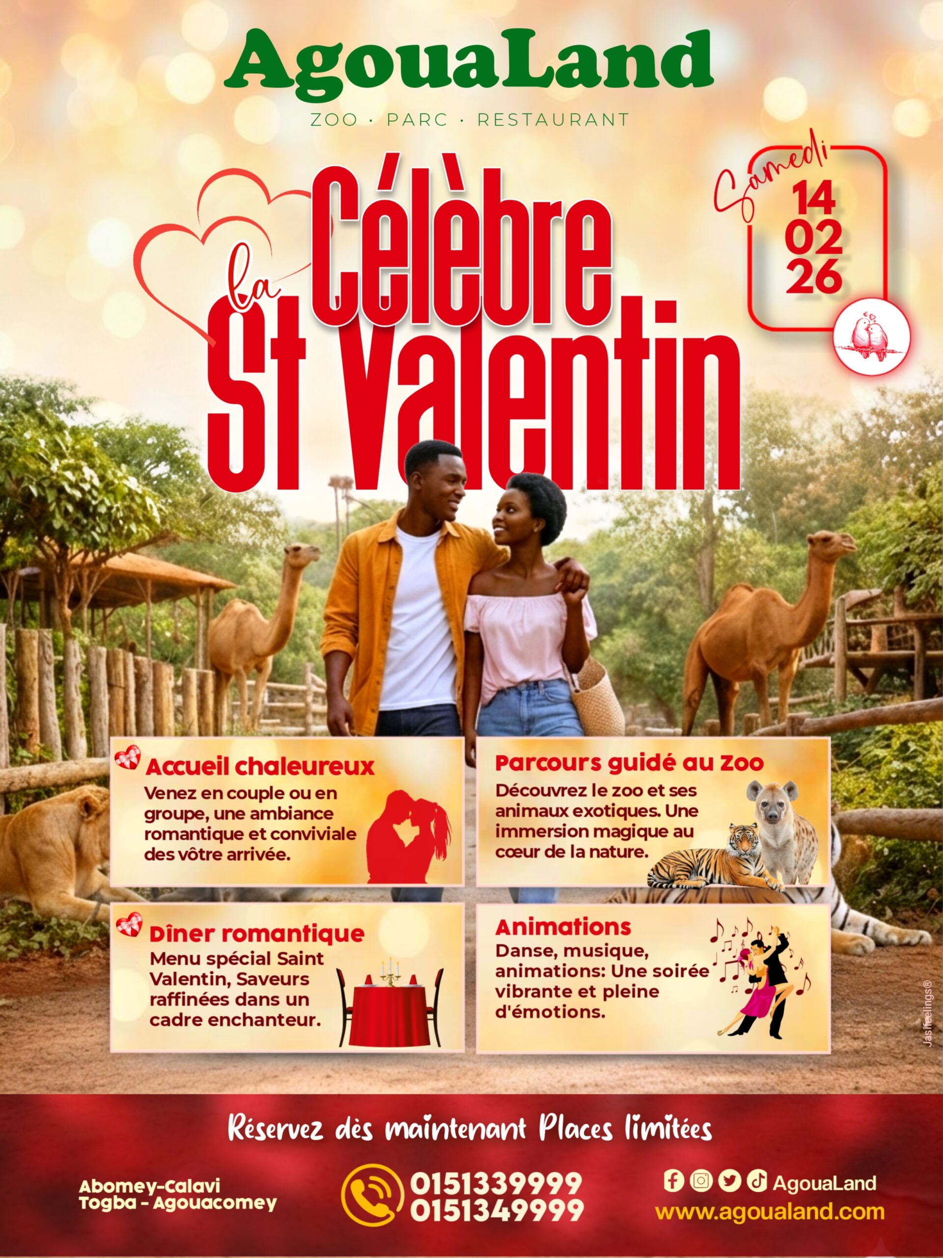 🌹 Le Complexe Touristique AgouaLand vous offre le décor parfait pour vivre la Saint-Valentin ❤️, une occasion idéale pour célébrer l’amour 💑 dans un cadre exceptionnel et partager un moment inoubliable à deux ✨. Entre nature luxuriante, atmosphère paisible et découvertes uniques, AgouaLand invite les couples à sortir de l’ordinaire 💖 pour vivre des instants de complicité, de détente et d’émotion 💫. Balades romantiques, cadre verdoyant, ambiance chaleureuse et expériences mémorables font du complexe un lieu privilégié pour renforcer les liens et créer des souvenirs précieux. En cette fête de l’amour 💝, AgouaLand vous ouvre grand ses portes à tous ceux qui souhaitent célébrer la Saint-Valentin autrement 💞, dans un espace où la nature et le romantisme 💕 se rencontrent harmonieusement.